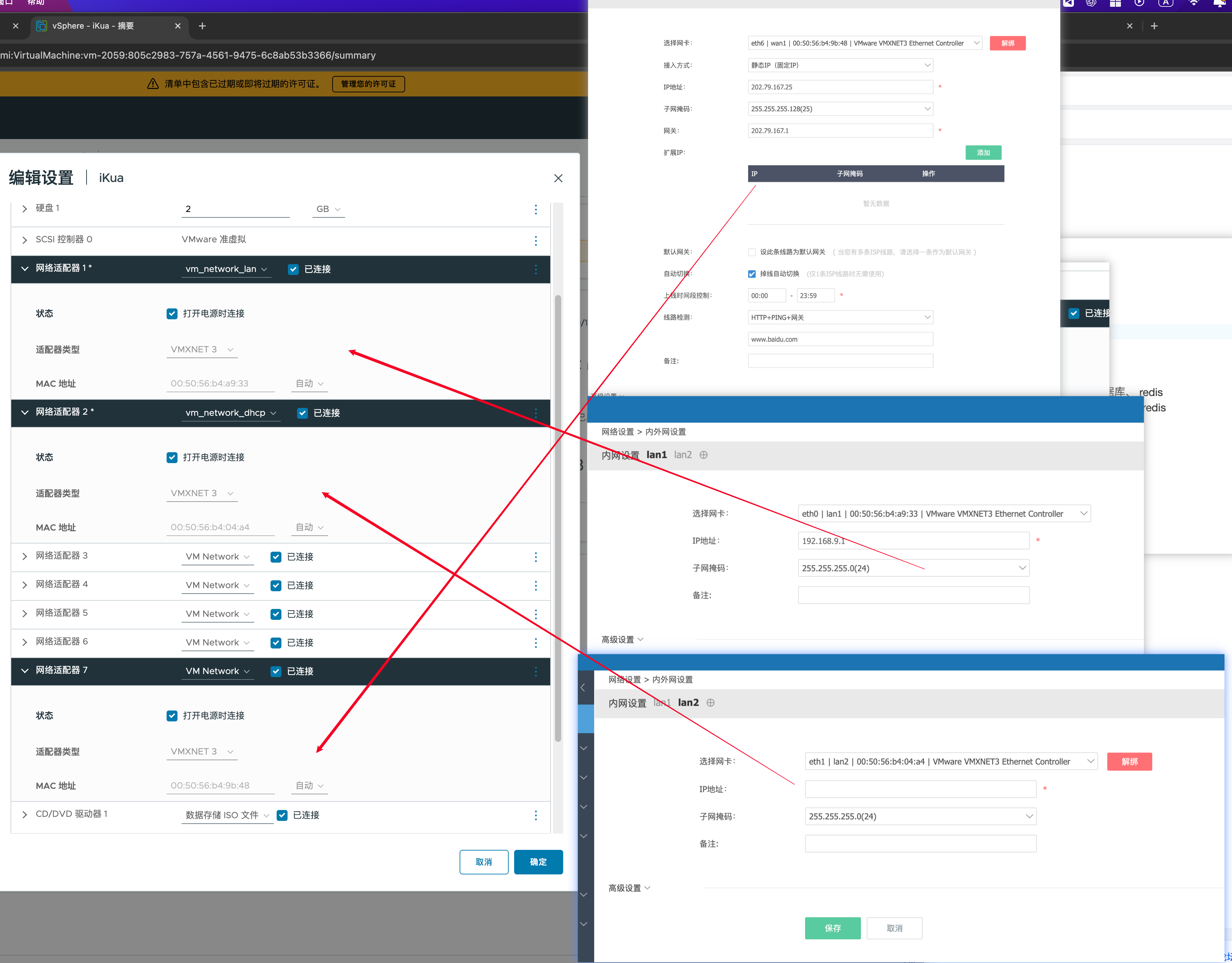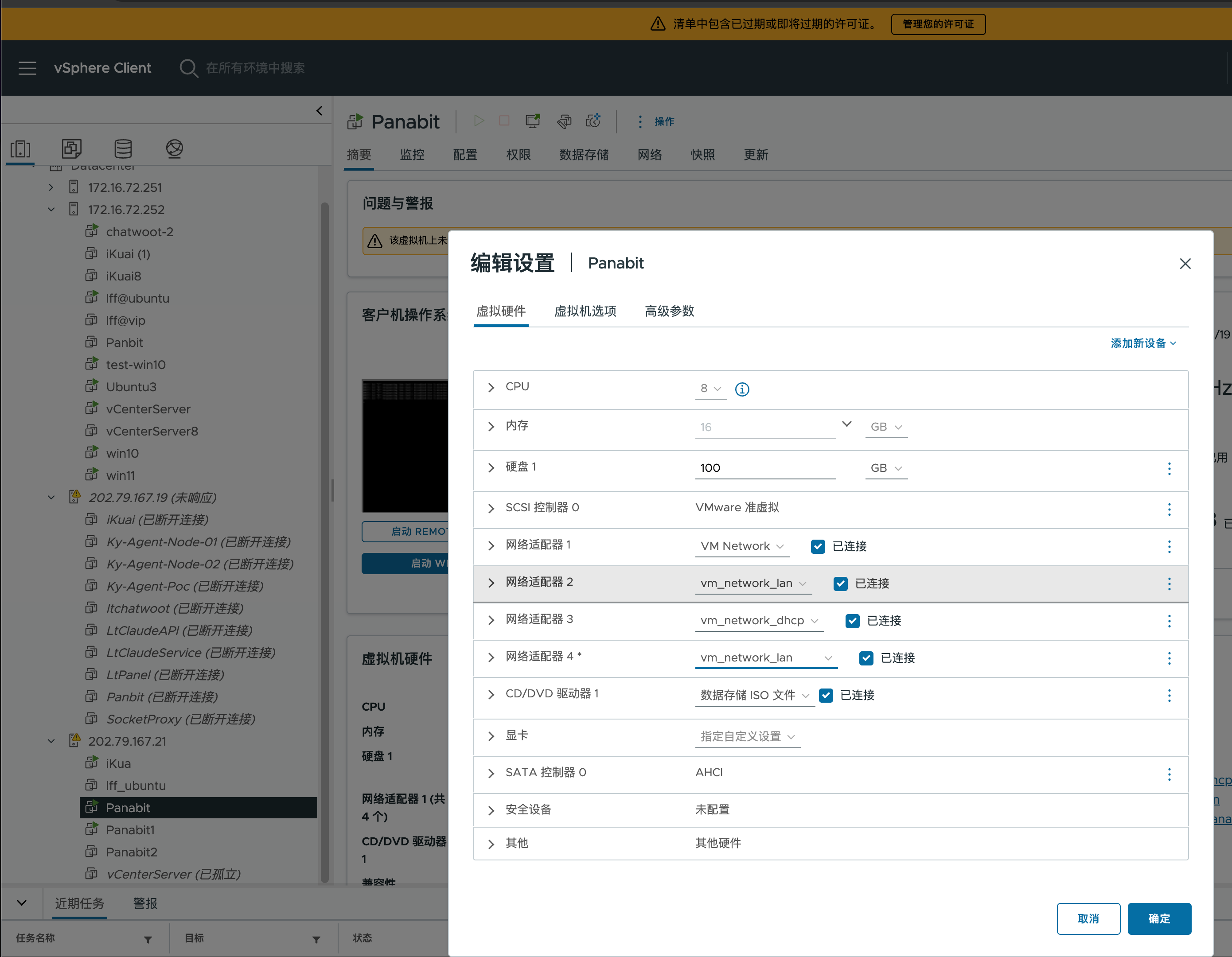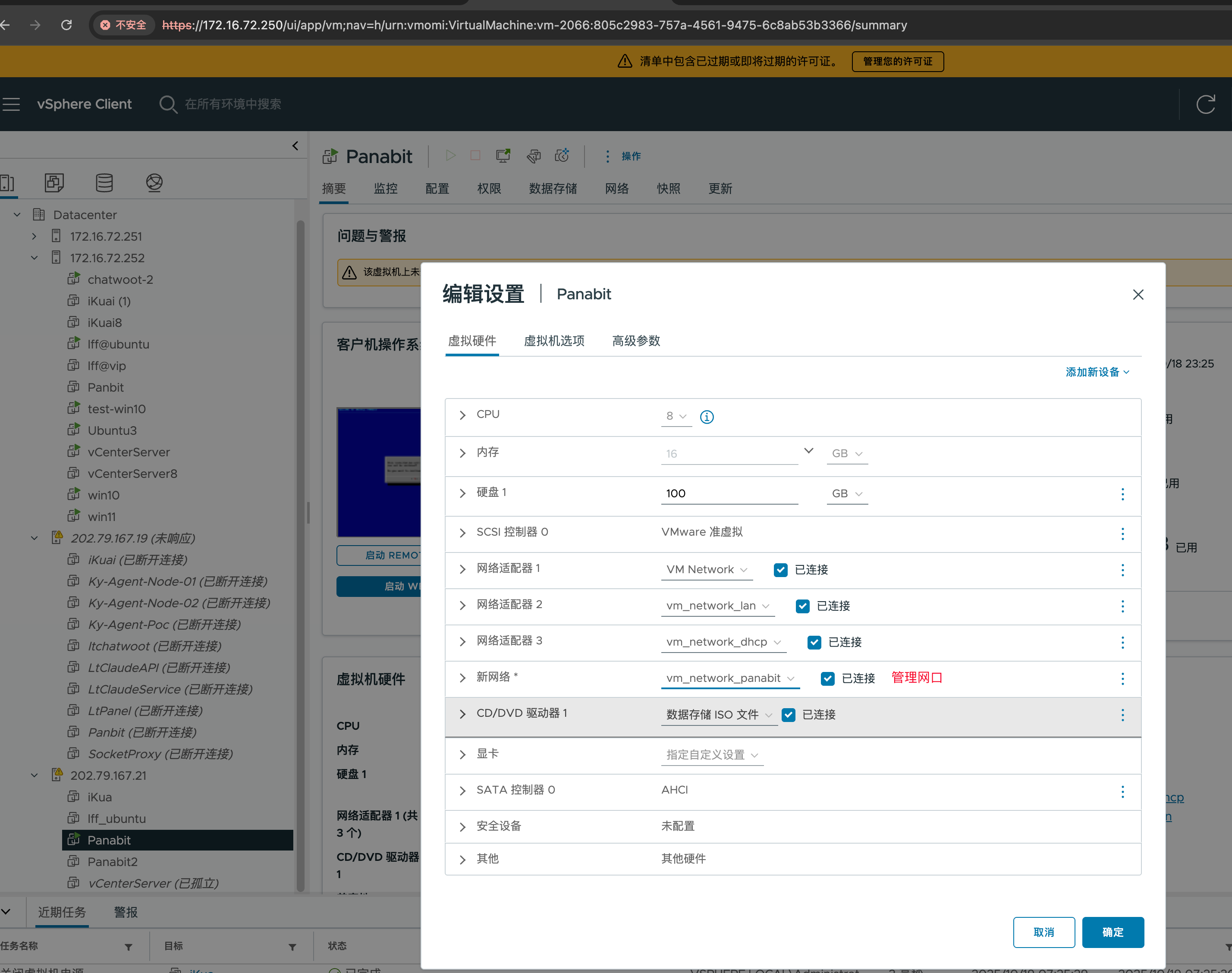 # 服务器配置文档 ## 基础访问信息 ### 主服务器 - 202.79.167.21 **VM管理:** - URL: https://202.79.167.21/ui/ - 用户名: `root` - 密码: `Lt#admin` 或 `Lt#160120` **虚拟机访问:** ```bash ssh -p 16622 root@202.79.167.21 ``` ### 可用IP地址 - 202.79.167.21 - 202.79.167.25 - 202.79.167.31 --- ## 网络规划 ### IP规划(内网) **第一组网段:** - 范围: `10.23.72.254/21` (可用内网IP: 10.23.72.xxx ~ 10.23.79.xxx) - 网关: `10.23.72.254` ``` 10.23.72.xxx 规划给物理设备用,例如ESXI,群晖NAS,路由器 10.23.73.xxx 规划给基于虚拟机的基础服务用例如数据库,代码仓库,存储,redis等 10.23.74.xxx 规划给同事个人用,运牛马系统、 10.23.75.xxx 规划给项目内试环境/开发环境 10.23.76.xxx 规划给项目生产 10.23.77.xxx 保留网段,例如后续市场项目用于放Demo项目,或其他方领域的应用 10.23.78.xxx 保留网段同上 10.23.79.xxx 保留网段同上 所有网段网关都一致为 10.23.72.254 所有网段 10.23.7x.1 和 10.23.7x.254 均作为保留IP ``` **第二组网段:** - 范围: `10.24.72.254/21` (可用内网IP: 10.24.72.xxx ~ 10.24.79.xxx) - 网关: 待定 **DHCP网关:** - IP: `10.23.71.254` ### 已使用IP地址 - 10.23.72.254 - 10.23.72.254 --- ## 存储规划 - **Data**: 业务数据盘 - **datastore**: 系统数据盘 --- ## 网卡规划 基于模版新建的虚拟机,网卡配置如下: - **网卡1 (lan)**: 自动获取IP(DHCP) - 临时使用,网卡2配置好后,需要在虚拟机配置中取消网卡1的连接勾选 - **网卡2 (lan)**: 手动设置固定IP - **网卡3 (wan)**: 用于数据分流,上网的流量走这个网卡 --- ## 端口映射 内网服务的端口映射到公网IP的指定端口,在 路由(iKuai或Panabit) 的端口映射功能上处理。 --- ## 新服务器架构 ### 基础硬件配置 #### Esxi 虚拟化平台 **iKuai 软路由** - 外网IP: `202.79.167.25:6443` - 内网IP: `10.23.72.254` **主路由(Panabit)** - 外网管理: `https://202.79.167.25:9443` (admin / Lt#160120) - 内网管理: `http://10.23.72.201:9443` (admin / Lt#160120) **其他组件** - 旁路由(Panabit) - VcenterServer `10.23.72.250:5480` root Lt#160120 #### Ubuntu 虚拟机 **虚拟机-数据库-公测** - IP: `10.23.73.250` - PostgreSQL 数据库最新稳定版 (端口: `5432`) - Redis 最新稳定版 (端口: `6379`) **虚拟机-数据库-生产** - IP: `10.23.76.xxx` - PostgreSQL 数据库最新稳定版 (端口: `5432`) - Redis 最新稳定版 (端口: `6379`) **虚拟机-gitea-Beta** - IP: `10.23.73.251:80` **其他虚拟机** - 邮件服务器 - DNS服务器 **虚拟机-业务服务-公测-1Panel** - IP: `10.23.73.202:21321` - 密码:root Lt#160120 **虚拟机-业务服务-生产-1Panel** - IP: `10.23.76.202:21321` - 密码:root Lt#160120 - 业务:22111.shop 项目 **虚拟机-业务服务-生产-1Panel** - IP: `10.23.76.203:21321` - 密码:root Lt#160120 - 业务:天天做的vip新客户的 项目 **虚拟机-Agent-cp (Ubuntu)** - IP: `10.23.74.101` - 密码: `root Lt#160120` **虚拟机-Agent-菲菲 (Ubuntu)** - IP: `10.23.74.102` - 密码: `root Lt#160120` **虚拟机-邮件服务器2( MailCow)-林菲菲(Ubuntu)** - IP: `10.23.74.103` - 密码: `root Lt#160120` **虚拟机-邮件服务器3-林菲菲(Ubuntu)** - IP: `10.23.74.104` - 密码: `root Lt#160120` - **虚拟机-cp** - IP: `10.23.74.xxx` #### Windows 虚拟机 **Windows 10** - IP: `10.23.73.xxx` **Windows 11** - IP: `10.23.73.xxx` --- ## 网络配置 ### 网关信息 | 类型 | IP地址 | 子网掩码 | 说明 | | -------- | ------------ | --------------- | -------------------------------- | | 外网网关 | 202.79.167.1 | 255.255.255.128 | | | 内网网关 | 10.23.72.254 | 255.255.248.0 | 10.23.72.xxx 至10.23.79.xxx 网段 | | DHCP网关 | 10.23.71.254 | 255.255.248.0 | 10.23.71.xxx 网段 | ## 公测环境 🎉 ### PostgreSQL 数据库 **访问方式:** ```bash # 外网访问 ssh -p 16622 root@202.79.167.25 # 密码: Lt#160120 # 内网访问 ssh root@10.23.73.250 # 密码: Lt#160120 ``` **数据库配置:** ``` 📊 PostgreSQL 数据库 - 版本: PostgreSQL 17.6 (运行中) - 端口: 5432 - 默认数据库: postgres - 默认用户: postgres - 默认密码: postgres123 - 数据目录: /data/postgresql/17/main - 日志文件: /data/postgresql/postgresql-17-main.log - 配置文件路径: /etc/postgresql/17/main/postgresql.conf ``` --- ### Redis 缓存数据库 **访问方式:** ```bash # 外网访问 ssh -p 16622 root@202.79.167.25 # 密码: Lt#160120 # 内网访问 ssh root@10.23.73.250 # 密码: Lt#160120 ``` **Redis 配置:** ``` 🔴 Redis 缓存数据库 - 版本: Redis 8.2.2 - 端口: 6379 (默认) - 配置文件: /etc/redis/redis.conf - 数据目录: /data/redis - RDB (快照): /data/redis/dump.rdb - AOF (Append Only File): /data/redis/appendonlydir/ - AOF 文件: - 基础文件: appendonly.aof.2.base.rdb - 增量文件: appendonly.aof.2.incr.aof - 清单文件: appendonly.aof.manifest ``` --- ### 1Panel 管理面板 **访问方式:** ```bash # 内网访问 ssh root@10.23.73.202 # 密码: Lt#160120 ``` **管理面板信息:** ``` 外部地址: http://202.79.167.25:21321/LtPanel 内部地址: http://10.23.73.202:21321/LtPanel 面板用户: root 面板密码: Lt#160120 ``` --- ### Gitea 代码托管平台 **访问方式:** ```bash # 外网访问 ssh -p 16624 root@202.79.167.25 # 密码: Lt#160120 # 内网访问 ssh root@10.23.73.251 # 密码: Lt#160120 ``` **部署详情:** ``` 🎉 Gitea 部署完成! 所有服务已成功部署并运行。以下是部署详情: 📍 访问信息 - 外网Web界面: - http://202.79.167.25:3000 - https://gitea.ktyun.cc/ - 内网Web界面: http://10.23.73.251:80/ - SSH克隆端口: 2222 🔧 服务状态 - ✅ Gitea: 运行中 (端口3000,通过Nginx反向代理到80) - ✅ PostgreSQL: 运行中 (数据库服务) - ✅ Redis: 运行中 (缓存服务) - ✅ Nginx: 运行中 (反向代理) 📂 数据存储位置 - 主目录: /data/gitea/ - 仓库存储: /data/gitea/data/gitea-reposi